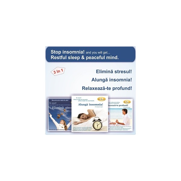 ”Stop insomnia! and you will get ... Restful sleep and peaceful mind!” - este o colecţie de şedinţe de hipnoterapie – în format mp3 - extrem de utile oricărei persoane care dorește să-și recapete acel somn profund și odihnitor, sau să-şi îmbunătăţească starea de spirit și să treacă mult mai ușor peste provocările vieții, făcând față cu succes oricărei situații stresante.
