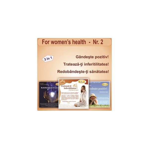 ”For women’s health – Nr. 2” - este o colecţie de şedinţe de hipnoterapie – în format mp3 - utile oricărei femei care, în încercarea sa de a deveni mamă, se confruntă cu unele probleme de sănătate și cu stresul indus de acestea.